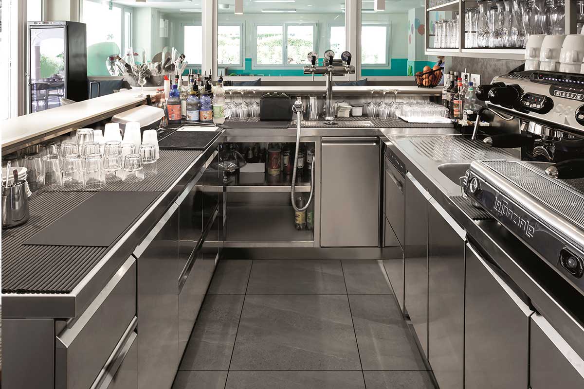 Characterised by a robust tubular structure in AISI 304 stainless steel, Prisma Bar Counter allows for the integration of all the fundamental components, thus developing into a perfectly organised professional system. The elements that complete the Prisma Bar Counter can be customised in terms of shape, materials and finishing, so as to meet the specific requirements of designers and interior designers, to create a unique and original solution, both technically and aesthetically.