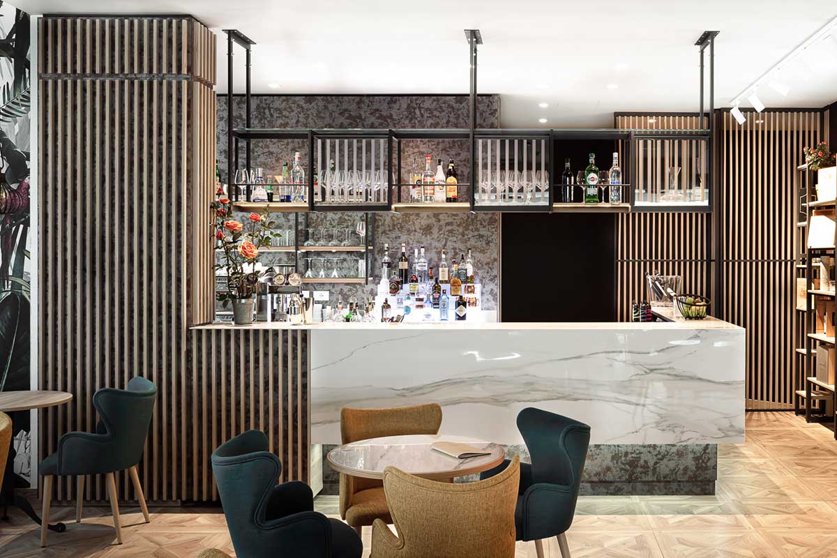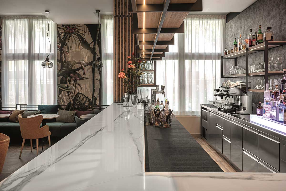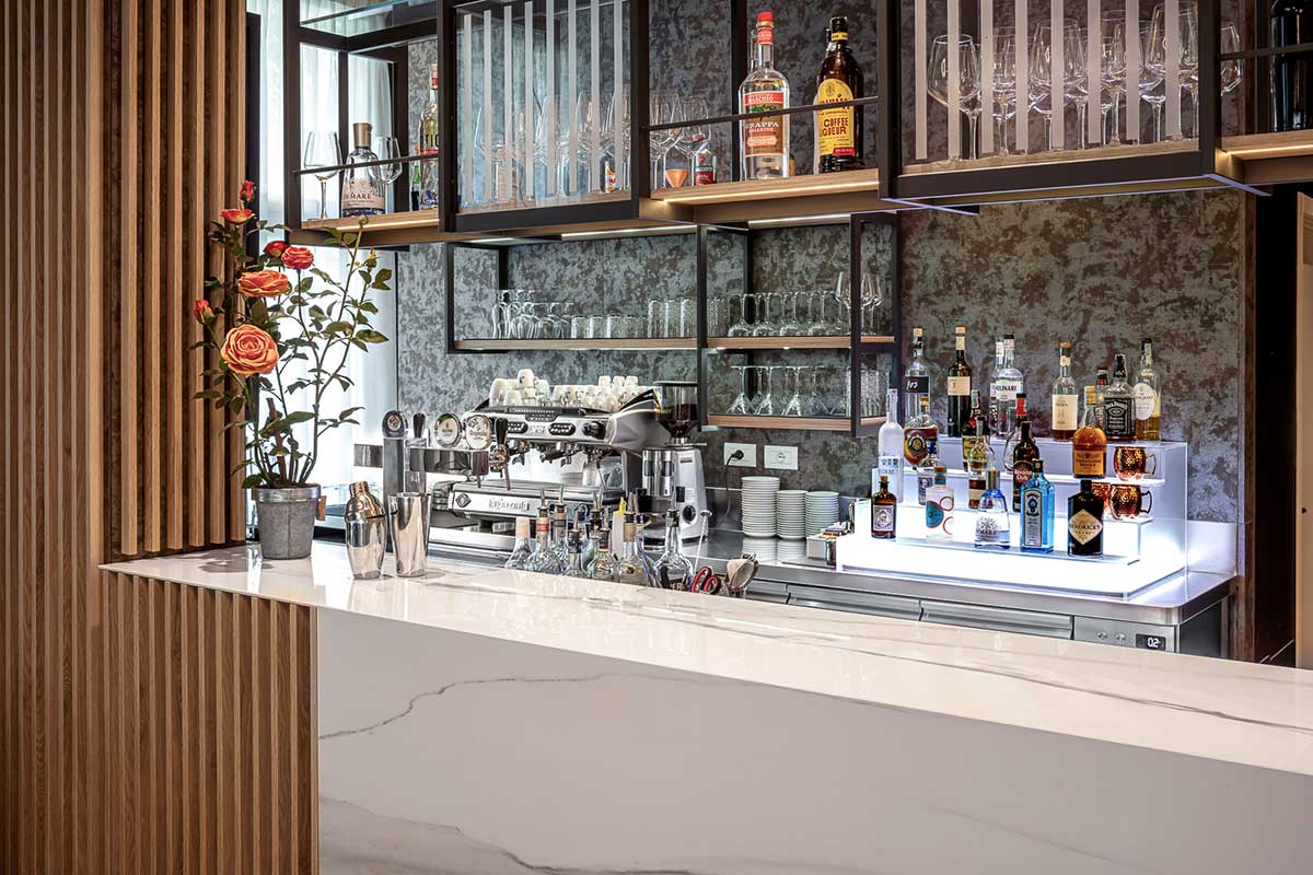 Prisma Bar Counter was conceived and developed as a high-quality professional tool, where aesthetic proportions meet maximum functionality and concrete flexibility.