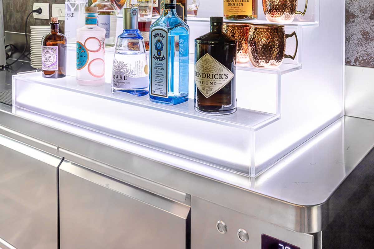 Prisma Bar Counter is the result of efficiency, technology, functionality and versatility – essential aspects for a professional concept – combined with design and creativity, which are equally important when it comes to structures that ‘dialogue’ with the public. Indeed, a bar counter must successfully blend with its surroundings not only to perform its function, but also to offer a pleasant aesthetic experience to guests.