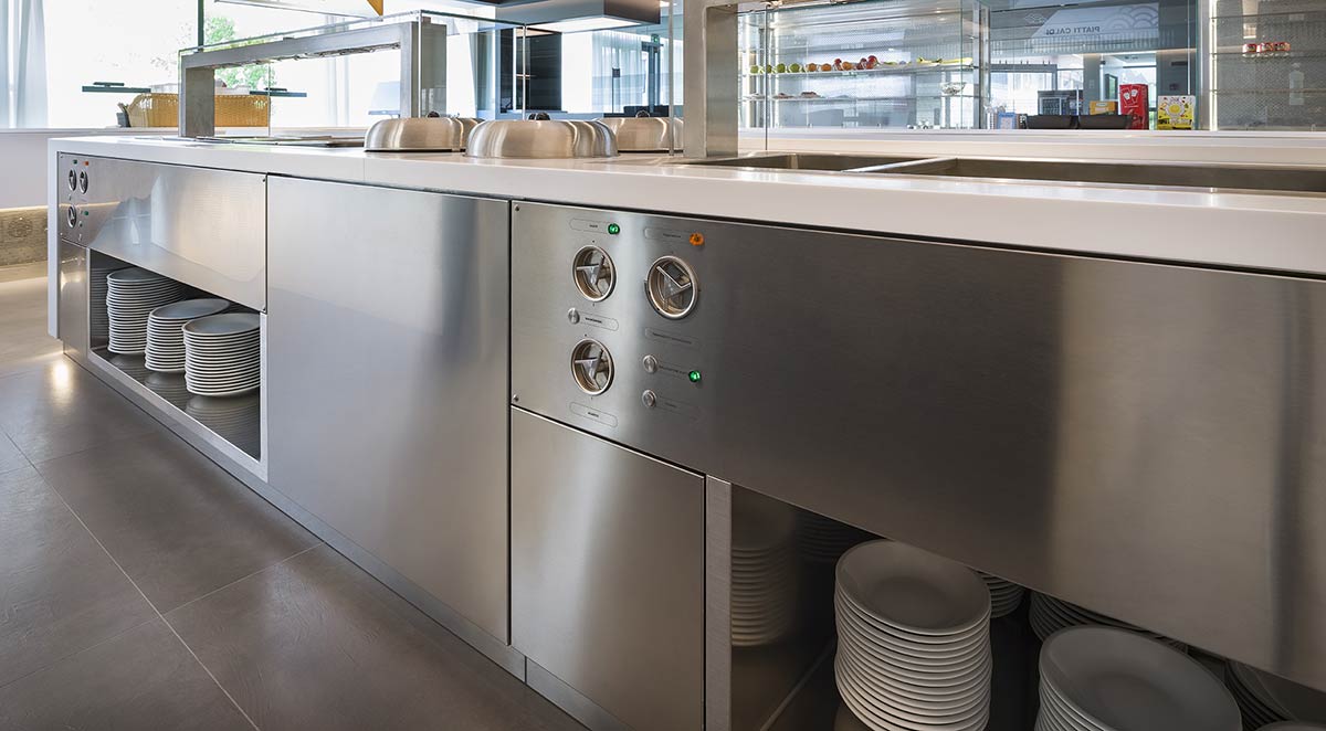 Prisma’s aim has always been to smartly combine aesthetics, ergonomics and functionality, resulting in a design with a solid stainless-steel structure. While the core is always stainless steel, the elements of the project may include various materials, which, combined with professional equipment, guarantee the best result.